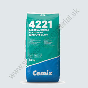 Sadrová gletovaná omietka Cemix 4221 – jednovrstvová omietka do hrúbky 10 mm. Skracuje dobu schnutia. Urýchľuje postup prác na monolitických konštrukciách. Strojovo spracovateľná: Pre efektívny postup prác. Pre hrúbku vrstvy od 5 do 40 mm v jednom kroku: Vyrovnáva rôzne nerovnosti. Na vytvorenie hladkej štruktúry povrchu: Úprava glejovaním. Reguluje vlhkosť vzduchu: Pre dobrú vnútornú klímu. Pružná, obmedzuje tvorbu trhlín.